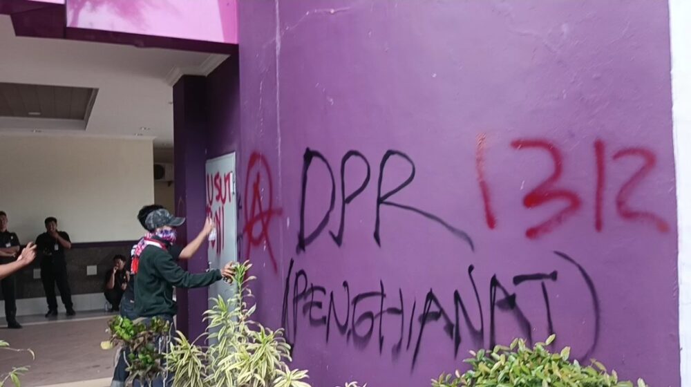 Bahkan terpantau, sejumlah masa aksi lain memulai aksi menghiasi tembok gedung DPRD dengan berbagai tulisan.