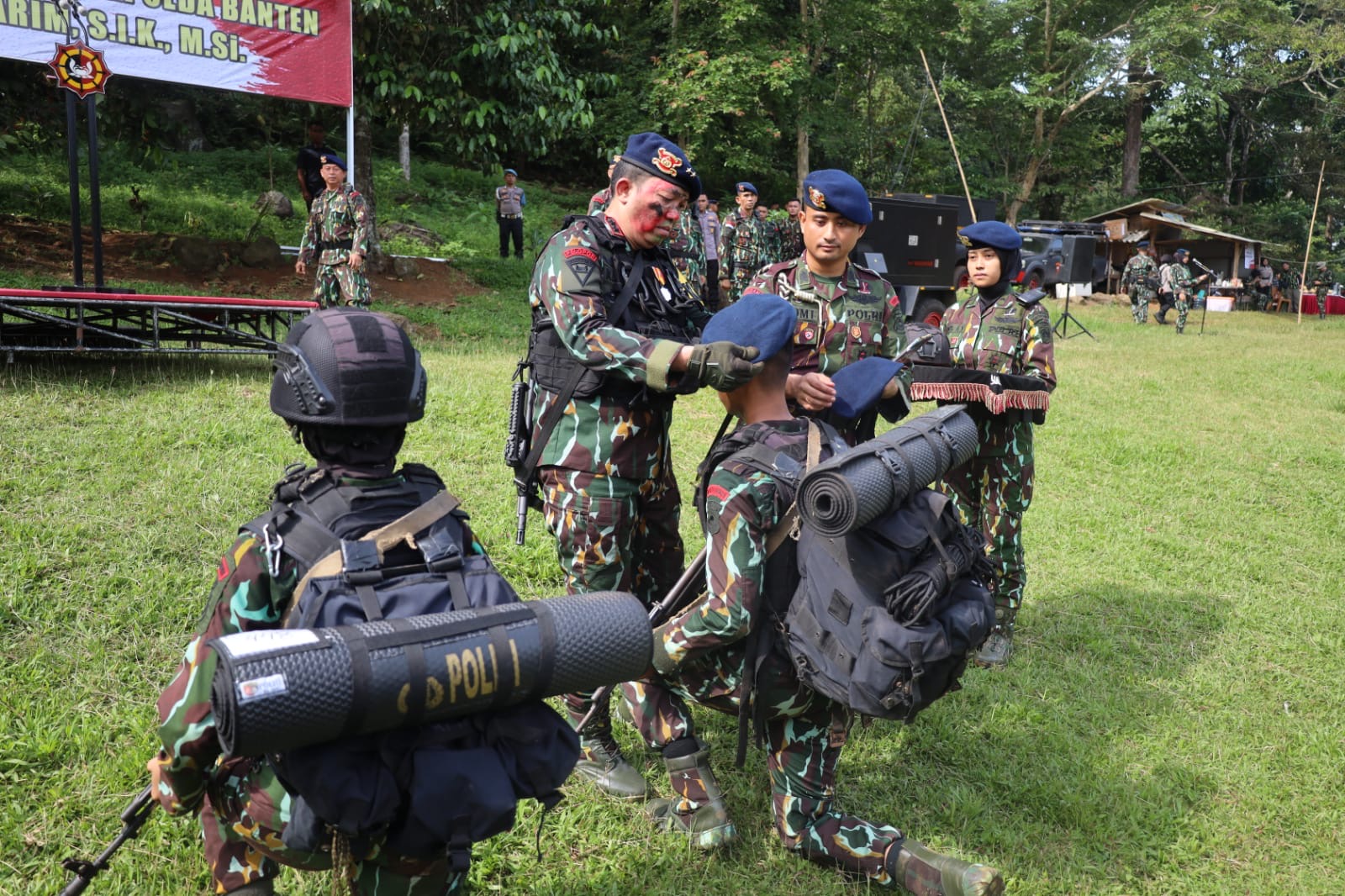 PANDEGLANG  – Setelah menerima Penganugerahan Warga Kehormatan Korps Brimob Polri, Kapolda Banten Irjen Pol Abdul Karim pimpin upacara Pembaretan Bintara Remaja Satbrimob Polda Banten angkatan 49 yang dilaksanakan di Bumi Perkemahan Cihunjuran Mandalawangi Pandeglang pada Selasa (12/12)